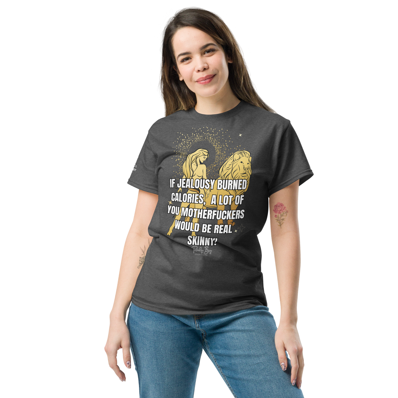 The 100% cotton unisex classic tee will help you land a more structured look. It sits nicely, maintains sharp lines around the edges, and goes perfectly with layered streetwear outfits. Plus, it’s extra trendy now!